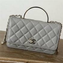 CHANEL ハンドバッグは、シンプルでありながら非常にエレガントなデザインで、グレーの良い品質なレザーを使用し、特徴的なキルティングパターンが施されています。フロントには、アイコニックな「CC」ロゴがしっかりとあしらわれ、バッグの洗練された印象を引き立てています。ゴールドのチェーンストラップに加え、持ち手部分が特徴的なデザインで、手持ちでもショルダーでも使える便利さがあります。上品でありながらもモダンな印象を与える、日常使いにも特別なイベントにもぴったりなアイテムです。シャネル ショルダーバッグ